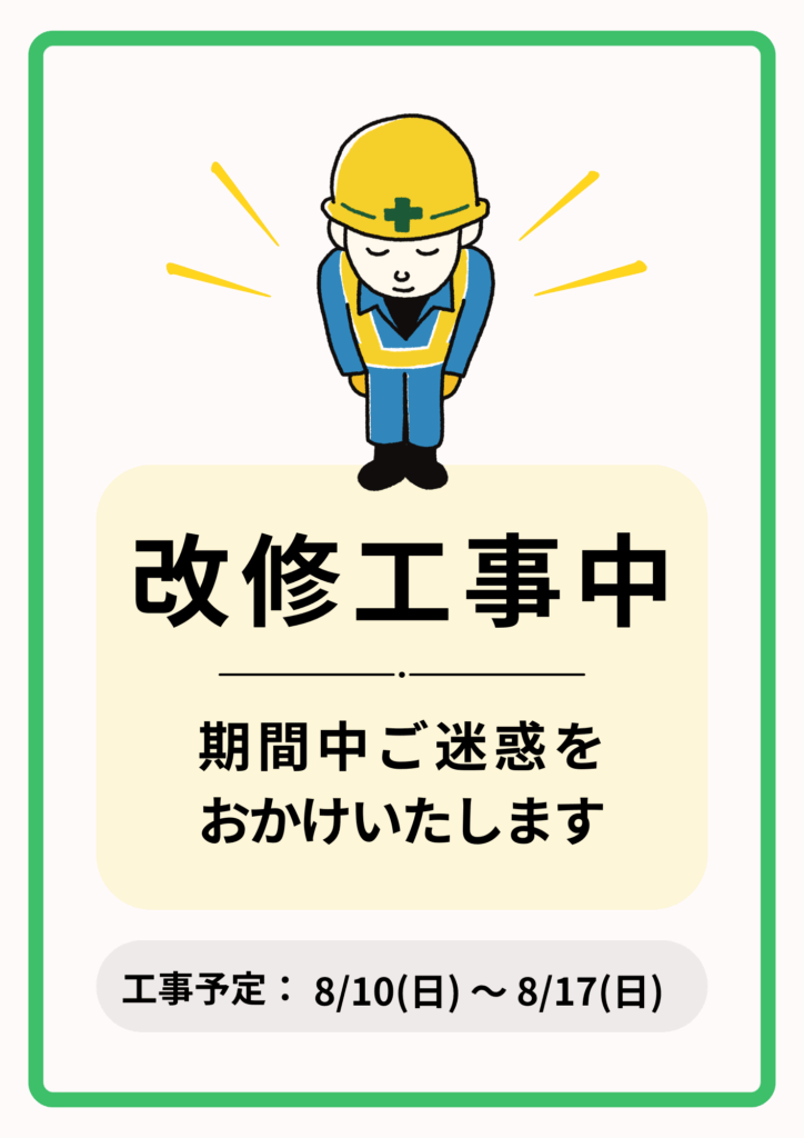下記の日程にて、事務所(鹿児島市荒田一丁目3-5)の改修工事を実施いたします。