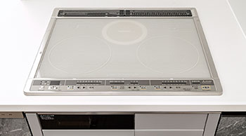 2口IHヒーターとラジエントヒーター付の水無し両面焼きグリルを採用。 お手入れ簡単で、火を使わず安全なIHヒーターは、高火力でスピーディに本格料理を可能にします。