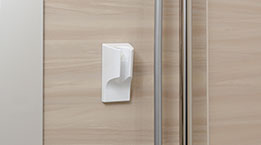 シャワーフックシャワーフックはお好みの場所へ移動できる便利な可動式。マグネットと吸盤のWの力でしっかり吸着します。