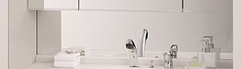 上部ミラーと洗面天板との中間部の仕様を、クリアミラーとホーローパネルからセレクトできます。