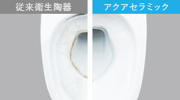 従来の衛生陶器ではできなかった「ガンコな水アカ」も「汚物」もどちらも落とせる、お掃除ラクラクな衛生陶器です。